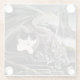 Le chaton tuxedo noir et blanc est assis à côté d'une gargouille. Derrière eux se trouve un château et des dragons.