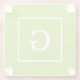 Dessous-de-verre En Verre Monogramme initial encadré blanc vert pomme