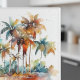 Ajoutez une touche de sérénité tropicale à vos tables grâce à ce dessous de verre en verre élégant, qui présente le design captivant de l'aquarelle "Sunset Grove". Les palmiers aux teintes chaudes et riches d'oranger, de marron et de vert sont hauts, leurs frondes sont crées d'objets fluides et de subtiles plaques pour une sensation dynamique. Parfait pour protéger vos surfaces dans une élégance naturelle unique.
