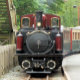 Le Pays de Galles, terre des petits trains à vapeur. Un train rouge magnifiquement préservé et des voitures vertes pleines de passagers.