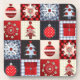 En vichy fantaisie de Noël en bleu et rouge et blanc cassé - de mignons arbres de Noël, des ornements et des flocons de neige décorés de boutons mignons et avec des en vichy et des pois comme arrière - plans pour les carrés. Un design de Noël préféré pour les fermiers et les familles cabines de campagne. Aucun vrai bouton ou tissu de courtepointe n'est sur ce produit, il est artistiquement créé pour ressembler à une courtepointe.