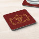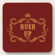 Le dessous de verre amusant pour les gens de la campagne comporte du texte "hush up" en or et cadre de fantaisie sur un arrière - plan rouge foncé.