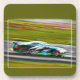 Une voiture de course rayonne le feu alors qu'elle atteint la fin de la ligne droite.