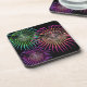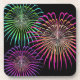 Cette image clipart présente 3 feux d'artifice qui explosent en l'air et se transforment en un déluge de couleurs. Un bouquet coloré de jaunes, verts, violets, roses et bleus. Ces dessous de verre sont en carré ou ronds.