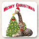 Adorable Giraffe de Noël avec son chapeau de Père Noël et décoré arbre de Noël - il place l'étoile sur le sommet de l'arbre