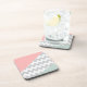 Coins en diagonale vert menthe et corail avec centre en chevron gris