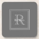 Ensemble de 6 dessous de verre gris décorés d'un monogramme avec l'accent et le nom de famille blancs.
