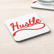 Le mot "hustle" en rouge avec des ombres tombantes en noir. Design original.