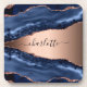 Un fond bleu foncé et or rose avec impression pierre de marbre agate. Personnalisez et ajoutez votre nom. Le nom est écrit avec un style de lettrage manuscrit moderne avec des fioritures.