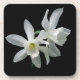 Ces dessous de verre élégants comportent deux belles jonquilles blanches pures sur un arrière - plan noir.