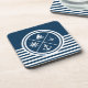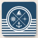 Design à thème nautique avec symboles nautiques (ancre, voilier, voilier, boussole) décoration sur arrière - plan rayé blanc et bleu marine.