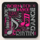 Danser votre passion ? Ce dessous de verre en plastique cool avec un design de nuage de mots dit tout. Certains mots, entrecoupés de notes musicales, sont : respirer, vivre, l'amour, la danse, le rythme et né à la danse. Cette version présente des tons rose, gris et blanc sur la couleur arrière - plan de votre choix. Recherchez ID277 pour voir d'autres options de couleur et faire correspondre les produits avec cette conception.