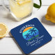 Nom de famille Beach House Summer Palm Trees Sunset Retro Style Dessous de verre bleu marine. Personnalisez avec votre nom de famille, votre lieu, votre année ou votre date d'établissement et plus.