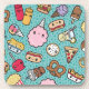Dessous de verre avec une illustration mignonne superbe de nourriture industrielle. Cette conception de motif d'amusement a l'hamburger, les fritures, les hot-dogs, la pizza, la crème glacée, le maïs éclaté et ainsi beaucoup d'autres griffonnages mignons de nourriture.