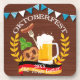 Festival de la bière Oktoberfest avec une tasse à bière, bretzel, saucisse, bannière à ruban aux couleurs du drapeau allemand, et drapeaux bavarois en haut pour célébrer l'Oktoberfest à l'automne.