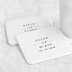 Ce dessous de verre en papier carré de mariage moderne est parfait pour un mariage minimaliste. Le design simple en noir et blanc présente une typographie industrielle unique avec style boho moderne. Personnalisable dans n'importe quelle couleur. Gardez le design minimal et élégant, en l'état, ou personnalisez-le en ajoutant vos propres graphiques et artwork. Personnalisez le étiquette avec les noms de la mariée et du marié et la date du mariage.