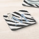 Ce dessous de verre a un papillon bleu délicat sur votre monogramme personnalisé et un arrière - plan de fourrure zébrée réaliste.
