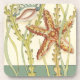 Charikilia Zarris est une artiste talentueuse connue pour ses oeuvres d'art océaniques. Ses images sont paisibles et calmes vous relaxant avec chaque photo. Obtenez cette oeuvre d'art nautique avec une étoile de mer et une coquille Conch étant le centre de tout, bordé de belle varech. Cette image sera très belle sur tous les produits finis.