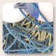 Un dessin photographique de la corde de pêche du crabe et des flotteurs d'un bateau de pêche.
