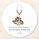dessous de verre de papier sur le thème du Oyster Pearl Party pour votre prochain Oyster Pearl Party ou événement sur les fruits de mer. Il présente une illustration de vin et d'huîtres en aquarelle.