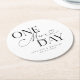 Dessous de verre minimaliste de répétition mariage avec texte typographique qui dit "un jour de plus". L'arrière - plan est blanc.