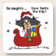 Soyez vilain et sauvez Père Noël le voyage ! T-shirts, sweatshirts, magnets, tasses, cartes, autocollants, sacs fourre-tout, porte - clés, mousepads, coussins, sets de table et autres vêtements et cadeaux de vacances humour Stella à Père Noël traîneau.