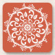 This white mandala sits on a dark orange background. Les colors are creative et chaud. Part of the Payon Mandala Collection.