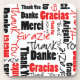 Gardez vos meubles en sécurité et dites grâce à vos invités avec ce dessous de verre carré conçu avec du "Merci" rouge et noir écrit en plusieurs langues et une variété de styles de police sur le blanc.