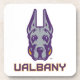 Le logo de la mascotte de l'Université d'Albany Great Dane présente une représentation stylisée de la tête d'un grand Danois. Le chien est illustré de lignes vives et audacieuses en violet et gris, lui donnant une expression féroce et confiante. Les oreilles sont hautes, symbolisant la vigilance et la force. Sous la tête du Grand Danois se trouve le mot "UAlbany" écrit en caractères d'or gras et bloquants, surligné de violet, renforçant l'image de marque de l'université. Cette conception représente les équipes sportives d'UAlbany, mettant en avant le pouvoir, la loyauté et la détermination.