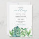 Ces invitations de mariage tropicale de destination disposent d'un fond d'eau couleur monstère feuilles de palmiers. Le mot "Mariage" est placé dans la typographie script tendance en vert émeraude. Utilisez les champs modèle pour ajouter vos informations personnalisées. Parfait pour les mariages au Mexique, Hawaiian Island, Floride ou n'importe quel emplacement de plage tropicale. Pour voir l'ensemble du thème mariage, visitez le site www.zazzle.com/dotellabelle L'aquarelle originale de Victoria Grigaliunas