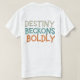 Das Design des T - Shirt enthält die Empowerment-Meldung "Destiny Beckons Bolly" in einem kühlen, bunten Schriftart. Die Farben könnten variiert und dynamisch sein, was den abenteuerlichen Geist des Satzes widerspiegelt. Dieses Design ist perfekt für diejenigen, die sich ihren eigenen einzigartigen Weg und jagen ihre Träume mit Mut.