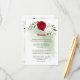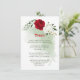 Romantische Rot-Weiß-Blume und grüne Blätter botanische Details Gehäuse Karte. Die Einzelheiten des Glitzer werden simuliert