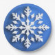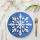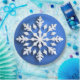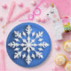 Hochwertiges Bild einer detaillierten, symmetrischen Schneeflocke mit einem gradientenblauen Hintergrund, das den Charme und die Feinheit des Winters symbolisiert. Ideal für saisonale Designs und festliche Projekte.