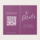 La réception de mariage et après la fête programme pratique et carte de boîtier avec code QR fait partie de l'ensemble simple typographique coeur prune violet et blanc mariage ensemble. Idéal pour être utilisé comme carte d'information de mariage ou pour une carte d'itinéraire pour vous tenir informé où aller le jour et la partie postérieure, peut également être utilisé comme carte d'hébergement. Tout le texte est modifiable simplement remplacer par vos propres lieux et heures, puis remplacer l'exemple de carte par le vôtre et déplacer les points marqueurs autour de la lettre vers vos lieux de rendez-vous. Ajoutez votre propre code QR au verso pour vous aider à obtenir plus d'informations ou à modifier des informations à votre invité et leur donner la possibilité de répondre en ligne. Si vous avez besoin d'aide pour personnaliser ou modifier ce design en fonction de vos besoins, contactez-nous. Autres éléments correspondants et options de couleur disponibles. Conception par Sarah Trett pour www.mylittleedenweddings.com sur Zazzle.