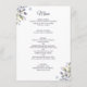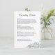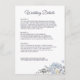 Fleurs romantiques bleu poussiéreux design botanique moderne idéal pour les mariages de printemps ou d'été. Détails de mariage combo au recto et menu au verso.