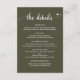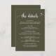 Détails mariage Carte de boîtier, dans le thème vert olive, où vous pouvez inclure votre réception de mariage, options d'hébergement, votre site mariage et d'autres.
