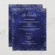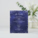 Un programme de mariage moderne et élégant / détails / chronologie. Un arrière - plan bleu marine décoré de parties scintillant en faux argent brille. La couleur bleue est inégale. Personnalisez et ajoutez vos noms et les détails du mariage. Lettres de couleur blanche. Texte des deux côtés. 1 feuille = 1 programme imprimé de bord en bord.