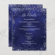 Un programme de mariage moderne et élégant / détails / chronologie. Un arrière - plan bleu marine décoré de parties scintillant en faux argent brille. La couleur bleue est inégale. Personnalisez et ajoutez vos noms et les détails du mariage. Lettres de couleur blanche. Texte des deux côtés. Ajoutez l'URL de votre site Web mariage au code QR. 1 feuille = 1 programme imprimé de bord en bord.