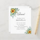 Un programme de mariage moderne, élégant, chronologie. Un arrière - plan blanc chic. Décoré de tournesols, de verdure vert d'eau, d'eucalyptus. Personnalisez et ajoutez vos noms et les détails du mariage. Lettres de couleur noire. Si vous avez plus de texte, il est possible de réduire l'espace de ligne, et de supprimer la décoration à l'arrière.