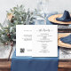 Un mariage moderne, élégant détails / programme / chronologie. Un arrière - plan blanc. Personnalisez et ajoutez vos noms et les détails du mariage. Lettres de couleur noire. Texte des deux côtés. Ajoutez l'URL de votre site Web mariage au code QR. 1 feuille = 1 programme imprimé de bord en bord.