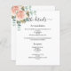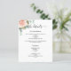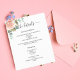 Un mariage moderne, élégant détails / programme / chronologie. Un arrière - plan blanc, décoré d'un or rose, d'une rose aux eaux vives et d'une végétation d'eucalyptus. Personnalisez et ajoutez vos noms et les détails du mariage. Lettres de couleur noire. Texte des deux côtés. 1 feuille = 1 programme imprimé de bord en bord.