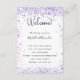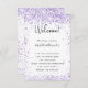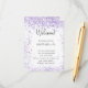 Un programme de mariage moderne et élégant, chronologie. Un arrière - plan blanc décoré de confettis violets, couleur lavande. Personnalisez et ajoutez vos noms et les détails du mariage. Lettres de couleur noire. Si vous avez plus de texte, il est possible de réduire l'espace de ligne.