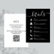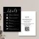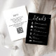 Diese einfache Details Timeline Gehäuse Karte mit Hochzeitsdetails mit einem scannbaren QR-Code und einfache Timeline, mit einem schwarz-weiß Stil,= und minimalistisch, Kalligraphie-Skript, mit Empfang Details und ein elegantes, Monogramm auf der Rückseite.