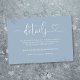 Diese elegante dustig blaue Herz-Drehbuch Hochzeitsdetails Gehäuse Karte kann mit Ihren Informationen in chic Typografie personalisiert werden. Entwickelt von Thisisnotme©