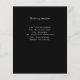 Eine moderne, elegante Hochzeitsdetails/Programm/Zeitleiste. Ein schwarzer Hintergrund. Personalisieren und fügen Sie Ihre Namen und Hochzeitsdetails. Weiße Buchstaben. Text auf beiden Seiten. 1 Blatt = 1 Programm, mit der Kante bis Kante bedruckt.
