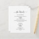 Eine moderne, elegante Hochzeitsdetails/Programm/Zeitleiste. Ein weißer Hintergrund. Personalisieren und fügen Sie Ihre Namen und Hochzeitsdetails. Schwarze Buchstaben. Text auf beiden Seiten. 1 Blatt = 1 Programm, mit der Kante bis Kante bedruckt.