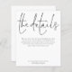 BITTE BEACHTEN SIE, DASS ES EINE pro Blatt gibt. Erhältlich in einem SEMI-GLOSS 110lb CARD STOCK, der die Standardoption ist (dicker für Einladungen, ähnlich dick wie eine Postkarte), ODER einem SATIN FINISH 80lb THIN PAPER STOCK (besser geeignet für dünne Gehäuse). Lass deinen Gästen Informationen wie Anfahrtsbeschreibung und Unterkunftsinformationen für deine Hochzeit, wenn du ihre Einladungen versenden kannst. Dieses elegante Design hat Set stilvolle große Typografie für den Titel The Details und die Erholung des Textes kann leicht personalisiert werden, um Ihre Worte. Sie können jede beliebige Farbe für Text- und Hintergrundfarben auf beiden Seiten über die weitere Option anpassen.