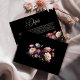Eine stilvolle, schwarz-blumengeschmückte Hochzeitskarte, die Sie mit Ihrer Einladung für alle wichtigen Zusatzdetails, die Ihre Gäste benötigen, um einen reibungslosen Ablauf Ihres besonderen Tages zu gewährleisten, einschließen können.