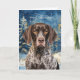 Jeder GSP- oder Deutsch-Drahthaar-Fan wird sicherlich aufgeregt mit dem Schwanz wedeln, wenn er diese lustige Weihnachtsgrußkarte öffnet, die einen wunderschönen Hund in einem winterlichen Kiefernwald zeigt.
