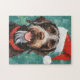 Buntes und fröhliches Weihnachtsdesign mit einem deutsch-Drahthaar-Pointer mit einer Weihnachtsmannmütze.